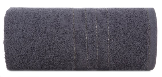 Ręcznik bawełniany z bordiurą zdobioną błyszczącą nicią szerokość: 30 cm, długość: 50 cm, kolor: grafitowy, Gramatura: 500 GSM, Skład: 100% bawełna; część ozdobna: 95% bawełna, 5% poliester