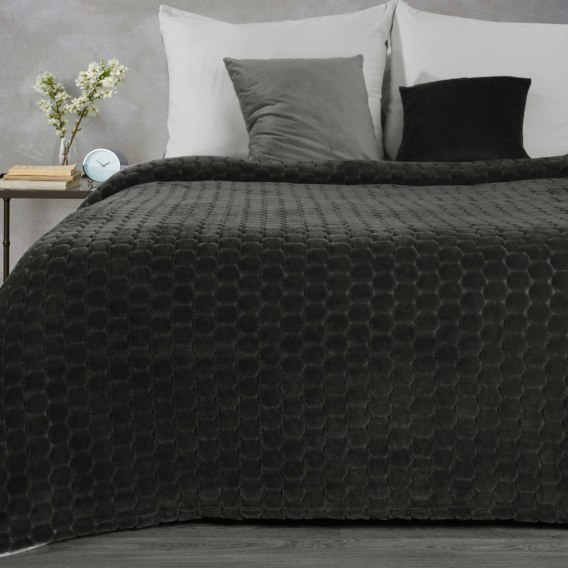 Koc flano bardzo miękki w dotyku z efektem 3d szerokość: 150 cm, długość: 200 cm, kolor: grafitowy, Gramatura: 250 GSM, Skład: 100% poliester