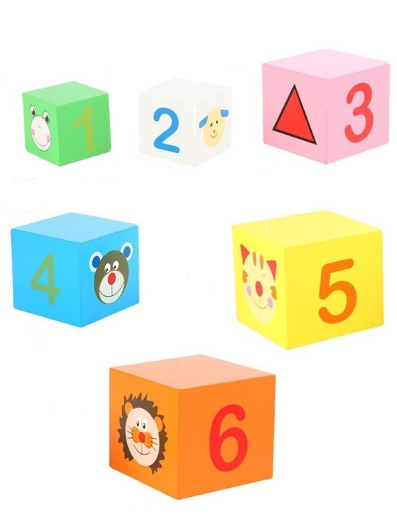 Każde z 6 pudełek ma inny kolor i rozmiar, na każdym z nich znajduje się inne zwierzątko, figura i cyfra. Dzięki temu dziecko uczy się kolorów, figur, cyfr oraz logicznego myślenia i dopasowywania kształtów.