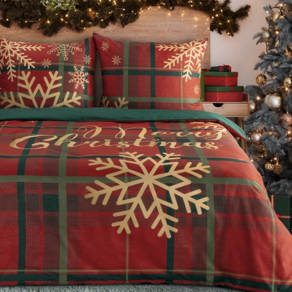 Komplet pościeli bawełnianej z nadrukiem świątecznym szerokość: 220 cm, długość: 200 cm, kolor: czerwony, Gramatura: 105 GSM, Skład: 100% bawełna