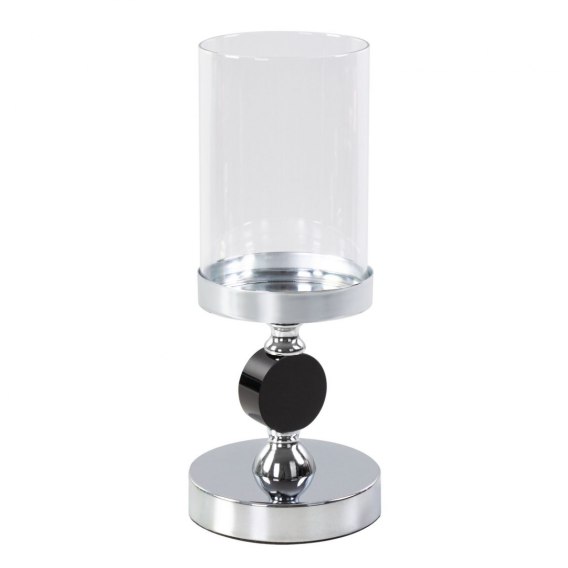 Świecznik dekoracyjny ze szklanym kloszem szerokość: fi 12 cm, długość: 30 cm, kolor: srebrny, Skład: metal, szkło