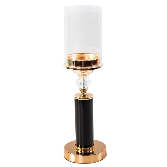 Świecznik dekoracyjny ze szklanym kloszem szerokość: fi 12 cm, długość: 42 cm, kolor: złoty, Skład: metal, szkło