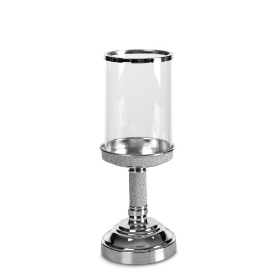 Świecznik dekoracyjny szerokość: fi 12 cm, długość: 30 cm, kolor: transparentny, Skład: metal, szkło