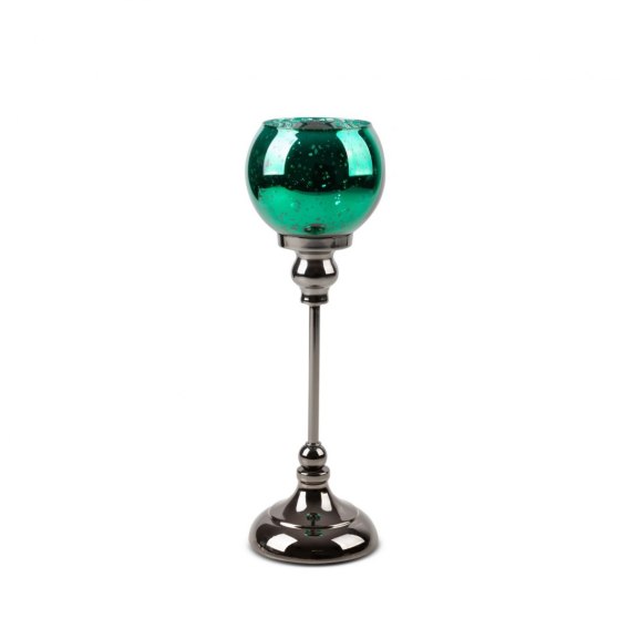 Świecznik dekoracyjny szerokość: fi 12 cm, długość: 35 cm, kolor: zielony, Skład: metal, szkło