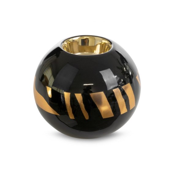Świecznik dekoracyjny szerokość: (fi) 9 cm, długość: 8 cm, kolor: czarny, Skład: glinka ceramiczna