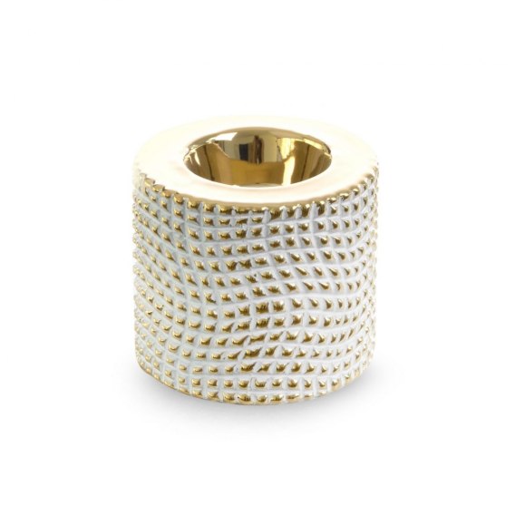 Świecznik dekoracyjny szerokość: O 8 cm, długość: 7 cm, kolor: biały, Skład: glinka ceramiczna