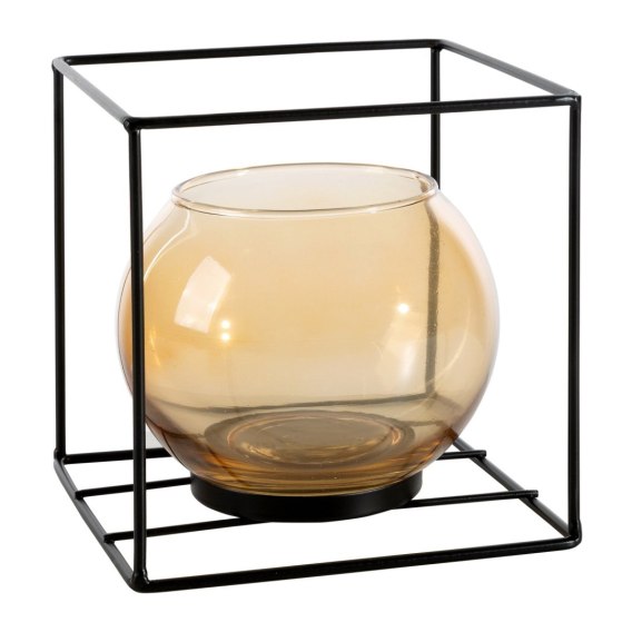 Świecznik dekoracyjny szerokość: 17 cm, długość: 17 cm, kolor: czarny, Skład: szkło, metal