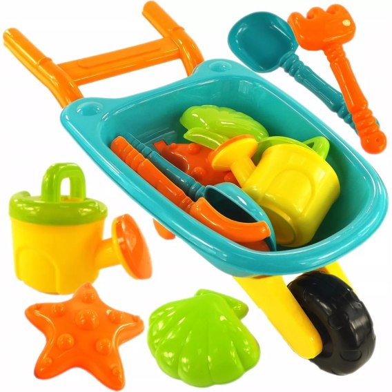 Nasz zestaw z taczką, konewką, foremkami i narzędziami ogrodnika to gwarancja niekończącej się zabawy.