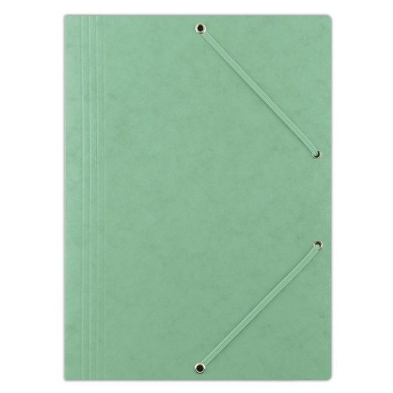 Wykonana z kartonu o gramaturze 390gsm, powlekanego woskiem_posiada Zielony Punkt (Der Gr_ne Punkt) - udział w systemie recyklingu i odzysku odpadów wynikający z przepisów prawa polskiego i UE_3-skrzydłowa_preszpanowa_zamykana za pomocą 2 płaskich, narożnych gumek w kolorze teczki_format: A4_rozmiar: 235x319mm_kolor zielony