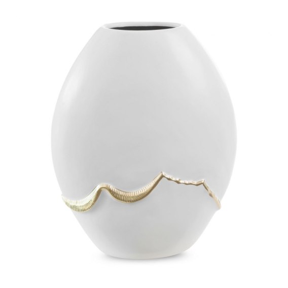 Wazon dekoracyjny szerokość: 24 cm, długość: 12 cm, kolor: biały, Skład: glinka ceramiczna