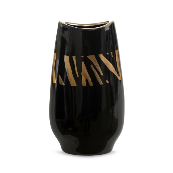 Wazon dekoracyjny szerokość: 14 cm, długość: 8 cm, kolor: czarny, Skład: glinka ceramiczna