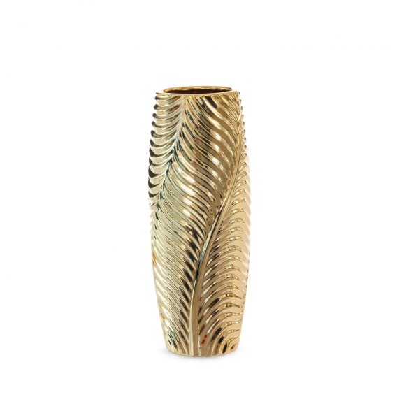 Wazon dekoracyjny szerokość: (fi) 12 cm, długość: 30 cm, kolor: złoty, Skład: glinka ceramiczna