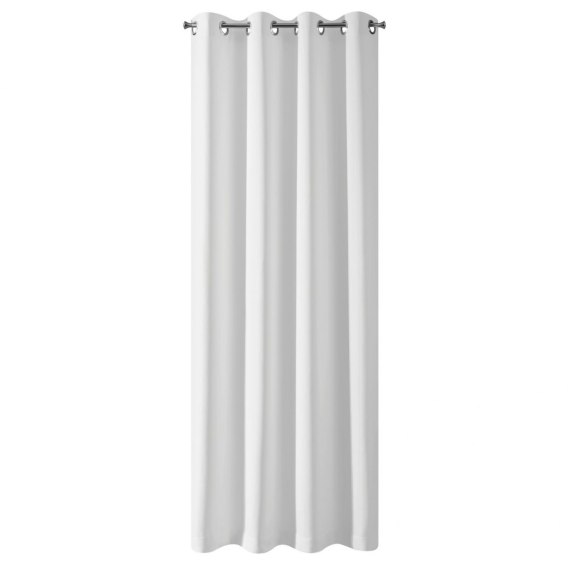 Zasłona zaciemniająca z mięsistej tkaniny typu blackout. Doskonała izolacja cieplna i akustyczna wnetrza. Jednokolorowa zasłona o minimalistycznym designie. szerokość: 135 cm, długość: 250 cm, kolor: biały, Gramatura: 210 GSM, Skład: 100% poliester