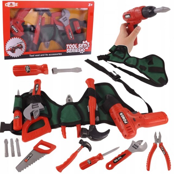 Rewelacyjny pas na biodra z zestawem narzędzi dla małych majsterkowiczów. Świetnie odwzorowane narzędzia i ich funkcje wprowadzą Twoje dziecko w świat majsterkowania. Będzie ono pomagało tacie w warsztacie i przy prostych pracach domowych. Zabawka uczy logicznego myślenia, zasady działania narzędzi, rozwija zdolności manualne i koordynację ruchową, a co najważniejsze rozwija wyobraźnię.