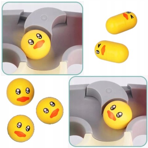 Piłeczki z buziami kaczek, które zjeżdżają radośnie po zbudowanym torze, unoszą się na wodzie