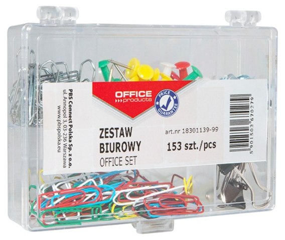 Zestaw biurowy (pinezki, klipy i spinacze) , mix 153szt., mix kolorów, typu OFFICE PRODUCTS 18301139-99